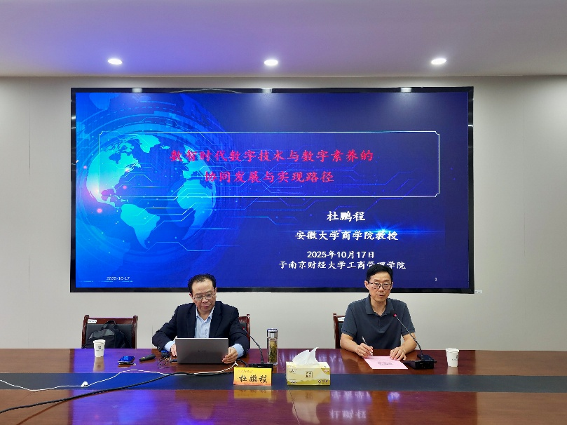 于德济楼408会议室举行“数字技术发展与员工数字素养协同”专题学术报告。安徽大学企业管理研究中心主任杜鹏程教授受邀主讲,91制片