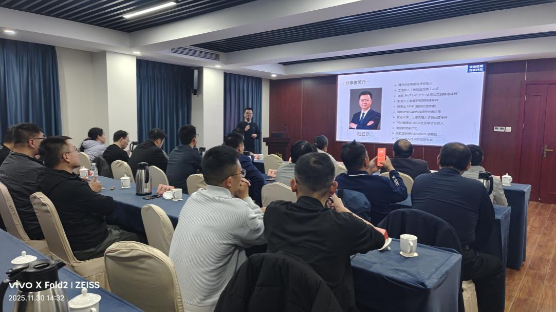 人工智能领域权威专家陆云昆作主题分享。作为工信部人工智能应用高级工程师、微软AIoT Lab特邀导师,陆云昆结合立邦集团、赫比(Hi-P)等世界500强企业案例,解析了专家智能体在金融风控、制造业预测性维护、政务合规审查等领域的应用路径。陆云昆通过“AI读书教练”智能体系统,创新融合“三刷四真”读书法框架,让与会校友亲身体验AI实现“知识提炼”与“实践迁移”的双重价值,生动展现智能技术对传统学习模式的变革。