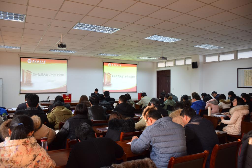 在仙林校区德济楼408会议室召开党员大会,开展以“重温新党章,感知新力量”为主题的“两学一做”学习教育。全体党员院领导、支部书记及全体师生党员60多人参加大会。大会由91制片