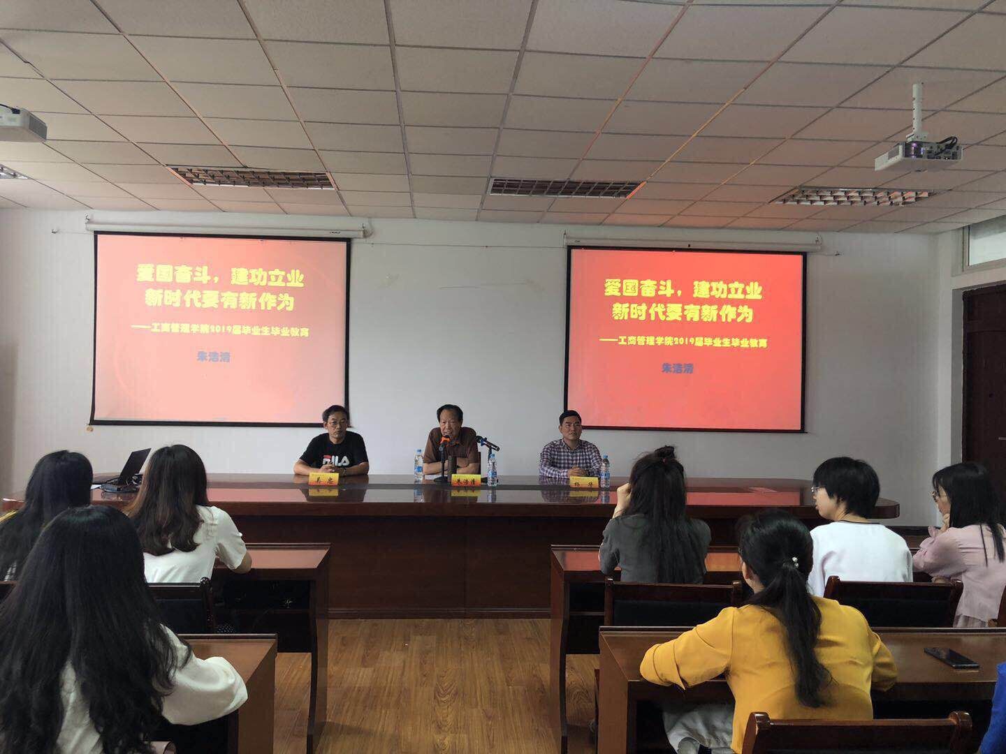 于6月18日下午在仙林校区德济楼408室召开“爱国奋斗,建功立业,新时代要有新作为”2019届毕业生毕业教育大会。邀请学院关工委副主任朱浩清老师作报告,学院党委副书记杨华主持会议,2019届优秀毕业生代表近60人参加,院行政办公室、党委办公室主任吴忠出席。