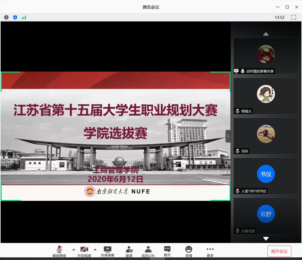 通过腾讯会议举办了第十五届大学生职业生涯规划大赛学院选拔赛,经过前期职业生涯规划书的筛选,共有14位选手脱颖而出进入决赛。教育部职业指导师、全球职业生涯规划师、江苏省教育厅就创业指导专家、91制片