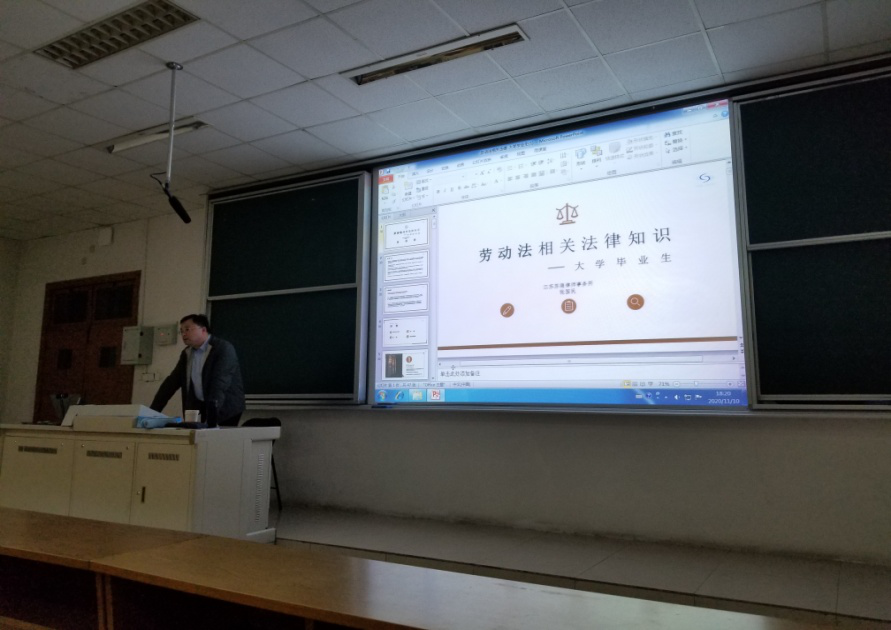 邀请,江苏省苏德律师事务所创始合伙人张国民律师在仙林校区博观楼202教室作了题为“我们身边的劳动法”的专题讲座,为即将毕业的2017级同学们提供关于劳动法方面的知识,并给予相关建议。讲座由91制片
