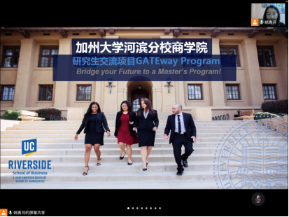 邀请,美国加州大学河滨分校(UCR)商学院招生代表姚青月老师通过腾讯会议在线为91制片