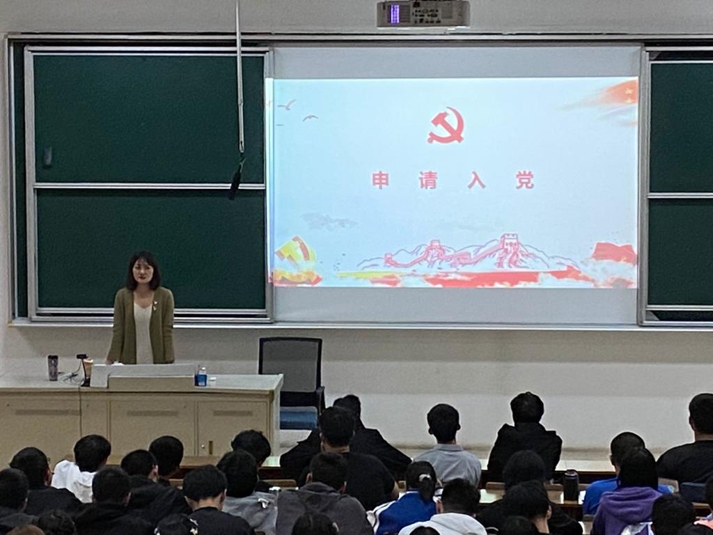 全真真副书记首先就“为什么去”、“做了什么”、“留下什么”、“得到什么”四个方面,向大家讲述了自己深入基层的经历。通过对自身经历的讲解,全真真副书记让大家更深入体会到了作为一名党员,自身个人价值的体现以及对社会的贡献。随后,全真真副书记向大家详细介绍了大学期间的入党流程,希望同学们端正入党动机,树立为国家和人民服务的宗旨。
