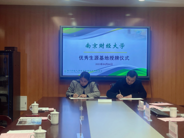 4月4日下午,我院在南京师范大学附属中学秦淮科技高中建立优质生源基地,并举行签约授牌仪式。南京师范大学附属中学秦淮科技高中执行校长徐国民,党总支副书记、副校长卓斌,副校长龚亮亮、刘少青,教学事务部主任兼高三年级主任王丽,党政办主任孙云霄,我校学生处副处长、招生办主任全真真,学院党委书记张杰、党委副书记尹海燕,应用数学学院副院长吴波,学院学工办主任邱祥霞参加仪式。