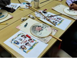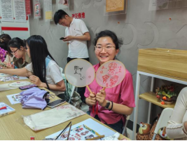 于七号宿管站纽扣空间举行“青年话民俗,共绘同心圆”团扇绘制活动。91制片