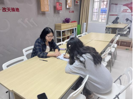 周二,心理辅导员赵菲开展一对一心理咨询,学生主动预约,就个人在人际关系、学业定位、职业发展上存在的困惑向老师求助,经过一个小时的沟通交流,学生情绪得到有效舒缓。