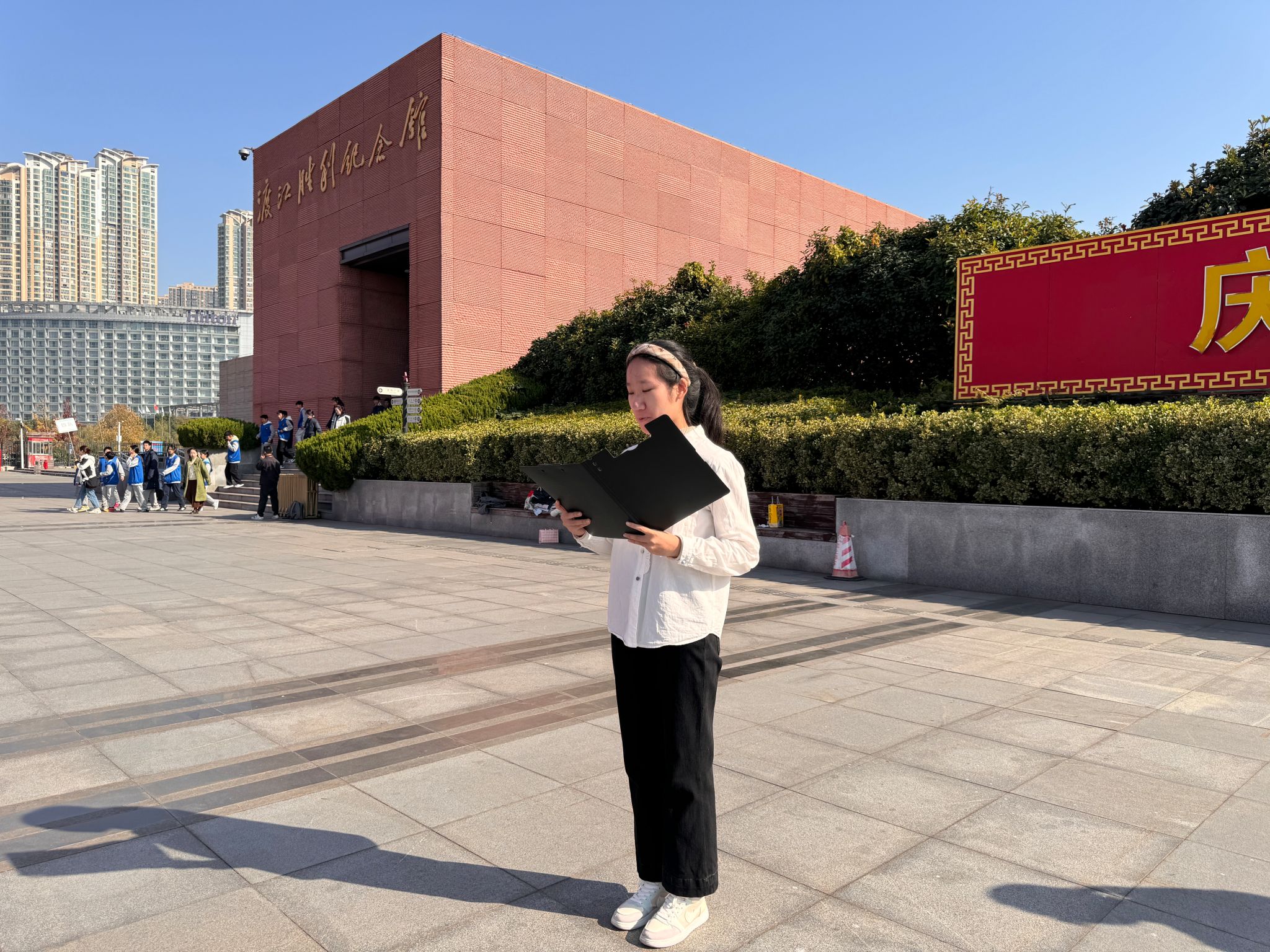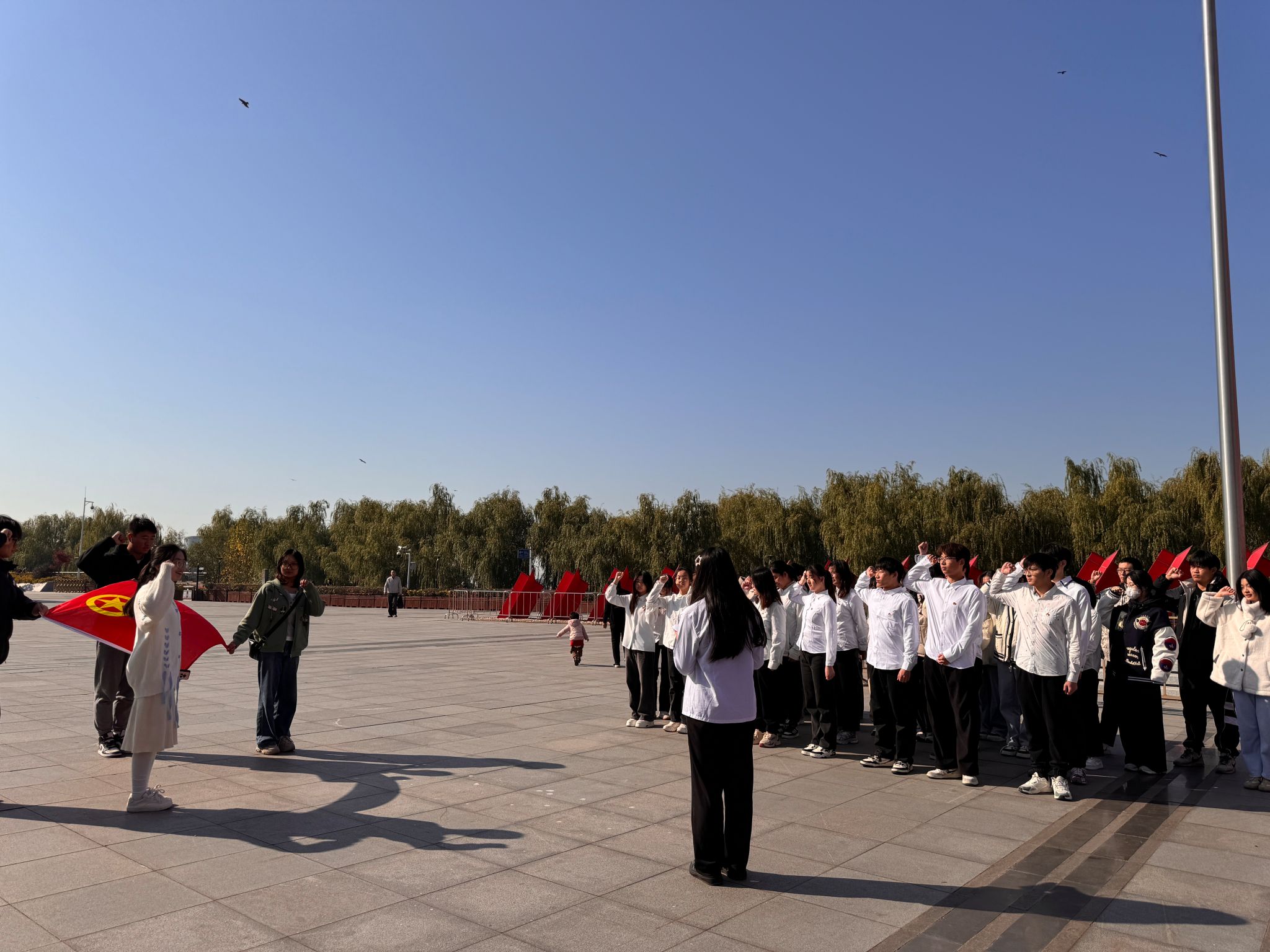 在庄严的国歌声中,新团员入团仪式拉开序幕。在纪念馆的红旗下,新团员们佩戴团徽,庄严宣誓。青春的誓言在广场上空回荡,映照着他们对共青团组织的忠诚和为共产主义事业奋斗的坚定决心。工商2201班蔡妮辰同学代表新团员发言,他感到非常荣幸,承诺将以更高的标准要求自己,“不断奋斗,争做榜样,积极投身于共产主义事业,用我们的青春谱写绚丽的篇章,让共青团员成为我们最骄傲无悔的身份。”91制片
