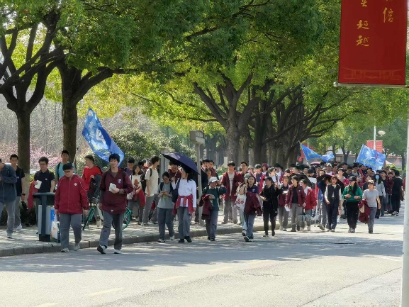 参访伊始,志愿者团队早早等候在南财西门,以热情的服务与专业的讲解,拉开此次参访活动的序幕。他们采用“一对一”班级对接模式,有条不紊地引导师生依次前往体育馆、大学生活动中心、天鹅湖及图书馆四大核心区域。高三学子们眼神炽热,专注地观察着校园的每一处角落,不放过任何细节。他们脚步沉稳,每一步都似在提前丈量着通往理想大学的道路,心中悄然种下对大学生活的美好憧憬,满心期待着即将开启的崭新篇章。