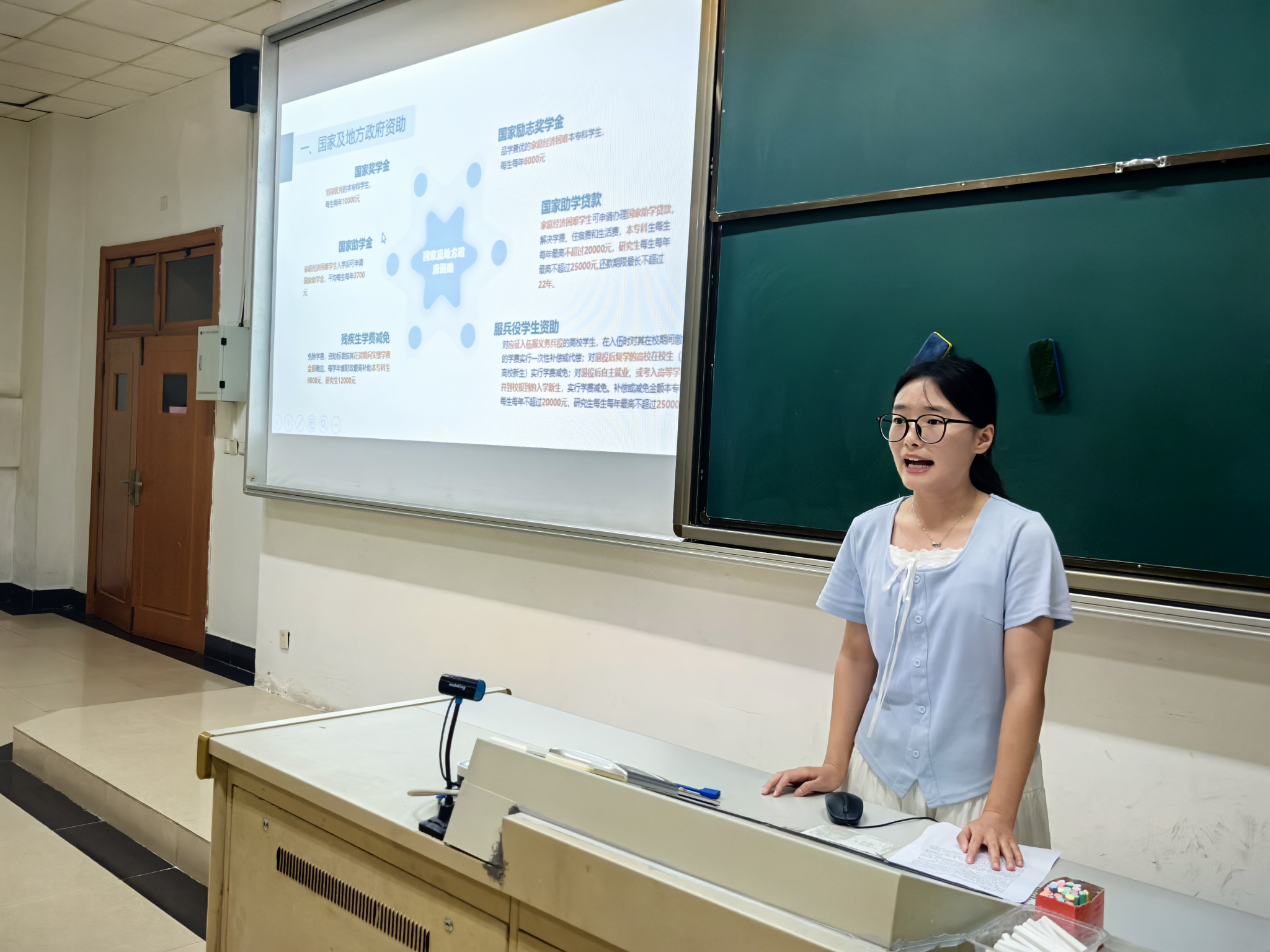随后,人资2301班王欣蓉以《沐资助春风 砺奋斗之志》为主题,系统宣讲了国家与学院的各类资助政策,帮助家庭经济困难学生树立信心、安心就学、专注学业。