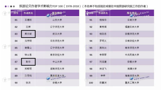 钟士恩副教授名列“旅游论文作者学术影响力Top 100”第86名(图片来源:中国旅游研究院)