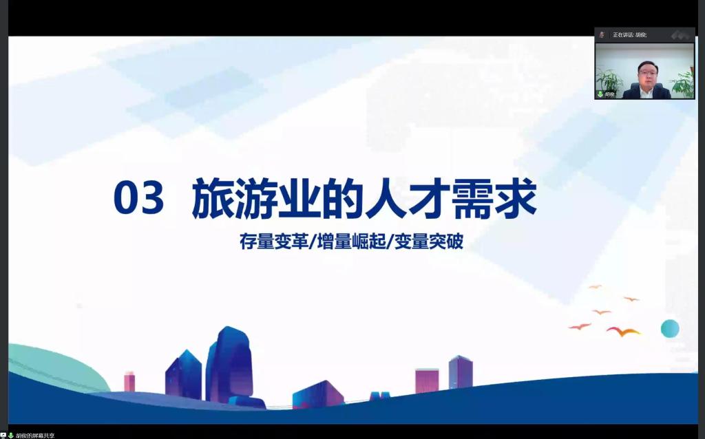 旅游管理专业2003届毕业生胡俊经理为旅游2201班全体同学作了题为“树立正确学业择业观,迈好人生关键一步”的线上讲座,讲座由91制片