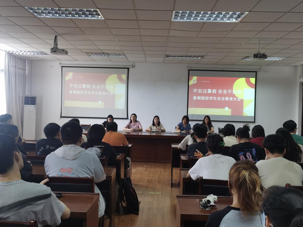 会议中,尹海燕副书记就消防安全、交通安全、防诈骗安全、饮食安全和出行、防溺水安全六个方面进行了说明,并强调暑假期间同学们要自觉遵守学校留校规定,严格落实请销假制度,在校期间务必做好自身安全防范工作。邱祥霞主任提醒同学们要加强沟通意识,保持电话畅通,出现问题第一时间与辅导员老师联系。