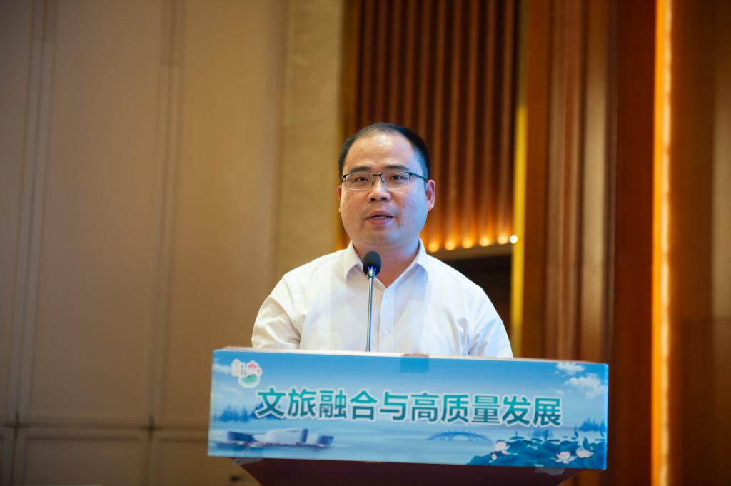 院长万绪才教授作“文旅融合助推旅游高质量发展逻辑框架及实践分析”主旨演讲,深入分析了文旅融合与高质量发展的逻辑框架,并提出了文旅融合助推旅游高质量发展的战略性举措。南京旅游职业学院副院长洪涛、江苏天目湖旅游股份有限公司总裁助理尤旭辉、金湖县人民政府副县长张云辉、江苏理工学院文化与旅游学院院长演克武分别作了题为“酒店行业高质量发展创新与实践”、“卓越绩效模式推动旅游企业高质量发展”、“杉荷景秀、美丽生金——金湖国家全域旅游示范区建设实践”和“长三角一体化背景下风景道优化路径、制度与评估方法”的主旨演讲。