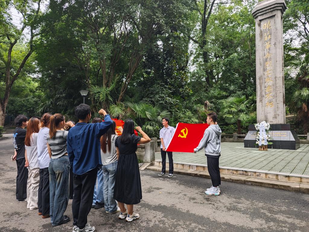 本科生第一党支部书记常莹、教师党员朱静坤与新发展党员们一同前往南京市栖霞区行知园,开展“熠熠来路忆行知,严明纪律守初心”七一主题党日活动。