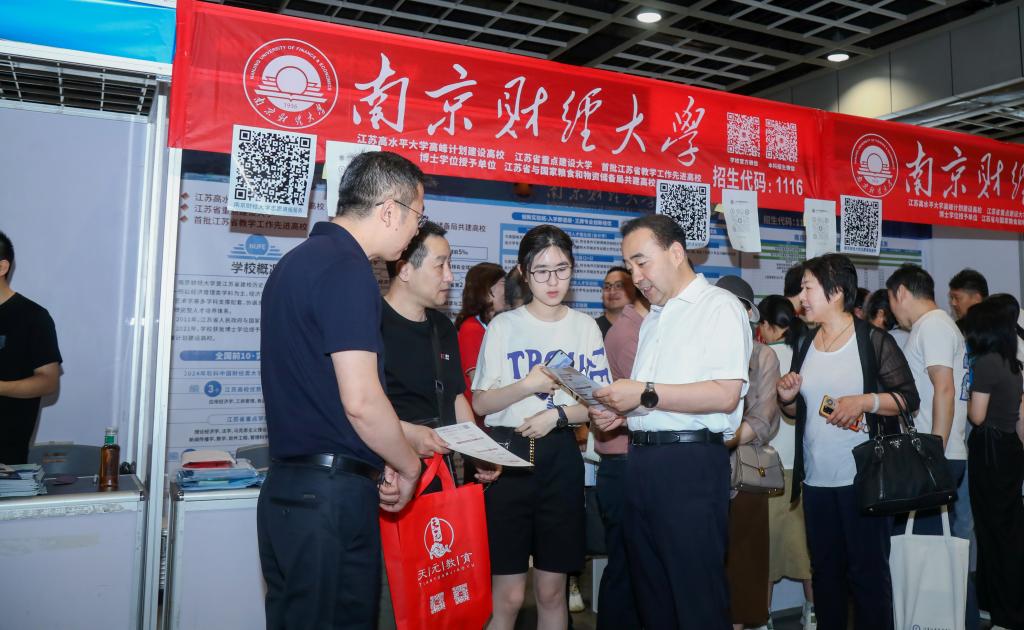 6月26日上午,校长程永波,校党委副书记李群,党委常委、副校长赵国栋、叶林祥一行赴南京国际展览中心开展本科招生宣传并看望招生宣传工作人员。党政办主任郑锷,学生处处长韩力争,91制片