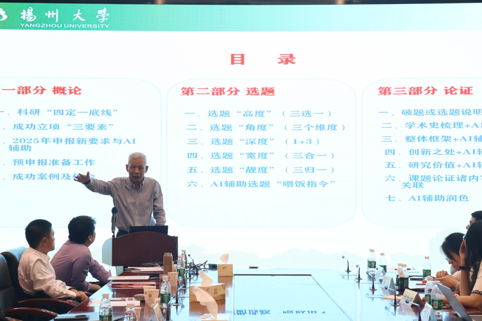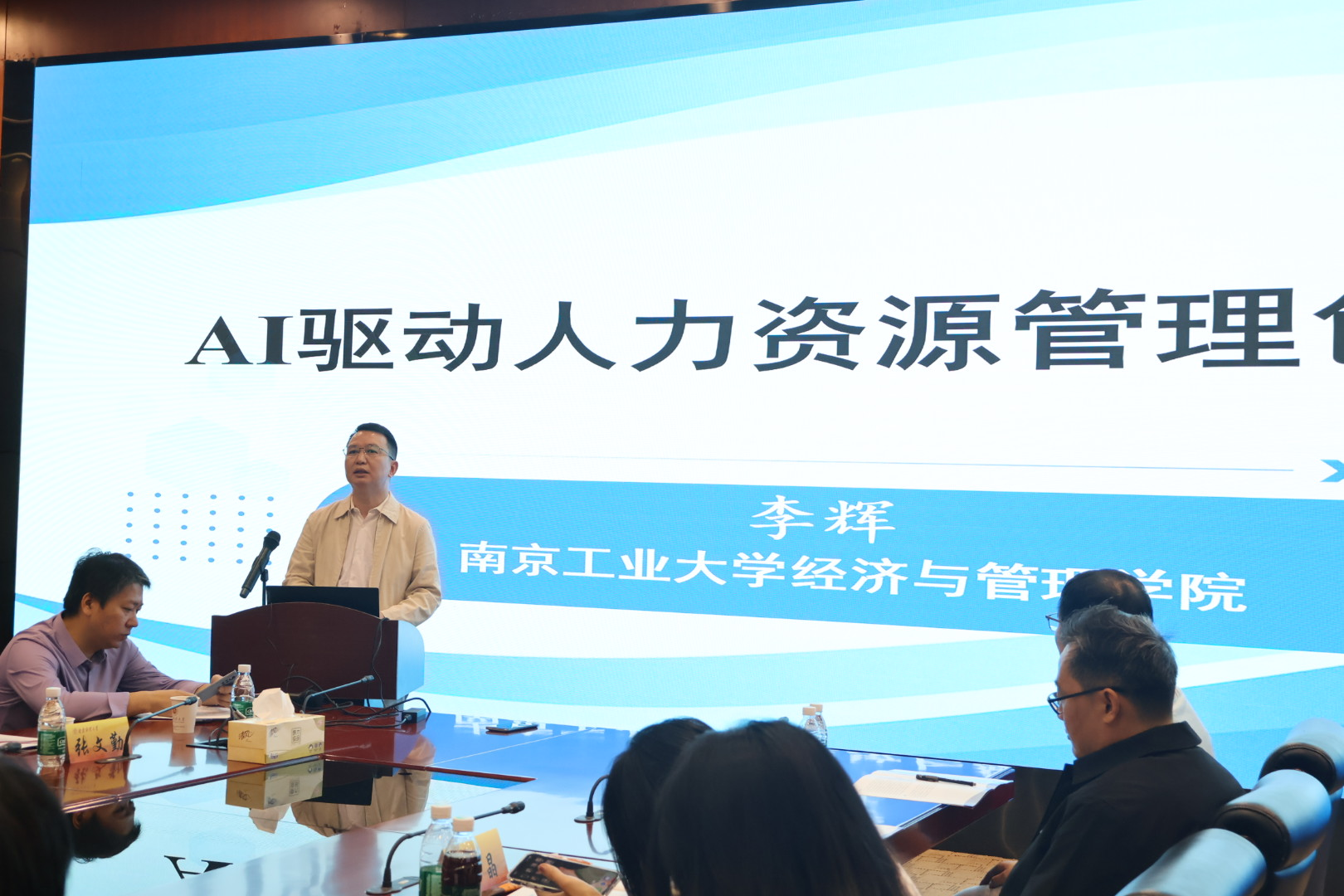 副院长张文勤主持,南京工业大学李辉教授以“AI驱动人力资源管理创新”,聚焦AI驱动的人力资源管理范式变革,并指出未来数智化人力资源管理需在技术赋能与人文关怀之间寻求新的平衡;第四场专题报告由江苏省企业高质量发展研究院院长殷华方主持,扬州大学秦兴方教授以“AI赋能2026国社科基金高质量选题与论证”为题,围绕AI技术在科研项目申报、学术研究等多领域的应用展开探讨,系统阐释人工智能如何革新科研范式,为社科基金的高质量选题与精准论证提供关键方法论支持。