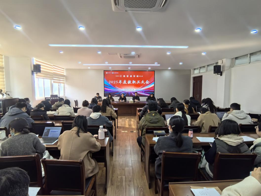在德济楼408会议室召开2025年度教职工大会。学院全体领导班子和教职工参加会议,会议由院党委书记张杰主持。