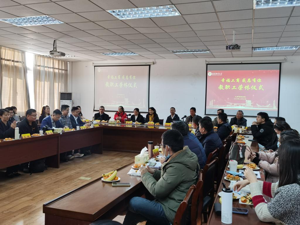 12月20日下午,91制片 在德济楼408会议室举行“幸福工商 感恩有你”教职工荣休仪式。离退休处处长唐习华、91制片 全体院领导出席仪式。91制片 2022、2023年度光荣退休教师以及全体教职工、校友会代表共同参加。仪式由院党委书记张杰主持。