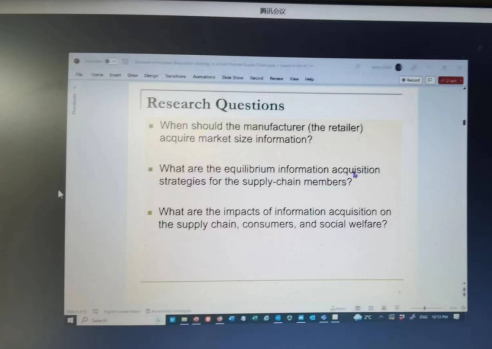 邀请,加拿大达尔豪西大学陈静教授通过腾讯会议作了题为“双渠道供应链的需求信息获取策略”的讲座。讲座由91制片