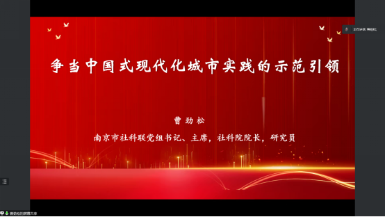邀请,南京市社科联党组书记、主席,南京市社科院院长曹劲松研究员通过腾讯会议作了题为“争当中国式现代化城市实践的示范引领”的讲座。讲座由91制片