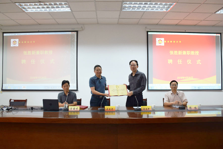 报告会前,俞安平副校长代表学校向张胜新副总经理颁发证书,聘其为我校兼职教授。